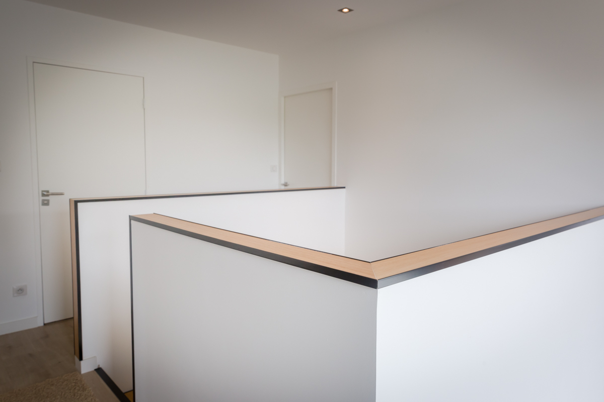 Projet Virginie II – Agencement Sur-Mesure Habillage & Rambarde à Saint-GrégoireProjet Virginie clin d’oeil à Virginie Despentes, écrivaine et réalisatrice française. Contexte Maison construite par les clients offrant de très beaux volumes. Les clients ont fait réaliser pour leur escalier un garde-corps en placo.Ce dernier vieillissait mal, les clients souhaitaient protéger l’ouvrage et trouver un habillage en harmonie avec leur intérieur.L’escalier a donc été le point de départ de la réflexion. DescriptionMain-courante installée sur l’ensemble du pourtour du garde-corps. Matériaux utilisés Acier laqué noir Panneaux plaqués essence fines – chêne vernis Partenaires Prototype Concept pour la fabrication et l’installation des agencements Projet Virginie II – Agencement Sur-Mesure Habillage & Rambarde à Saint-Grégoire Projet Virginie II – Agencement Sur-Mesure Habillage & Rambarde à Saint-Grégoire Projet Virginie II – Agencement Sur-Mesure Habillage & Rambarde à Saint-Grégoire Projet Virginie II – Agencement Sur-Mesure Habillage & Rambarde à Saint-Grégoire Avant Avant Projet Virginie II – Agencement Sur-Mesure Habillage & Rambarde à Saint-Grégoire Projet Virginie II – Agencement Sur-Mesure Habillage & Rambarde à Saint-Grégoire Projet Virginie II – Agencement Sur-Mesure Habillage & Rambarde à Saint-Grégoire Projet Virginie II – Agencement Sur-Mesure Habillage & Rambarde à Saint-Grégoire Avant Avant