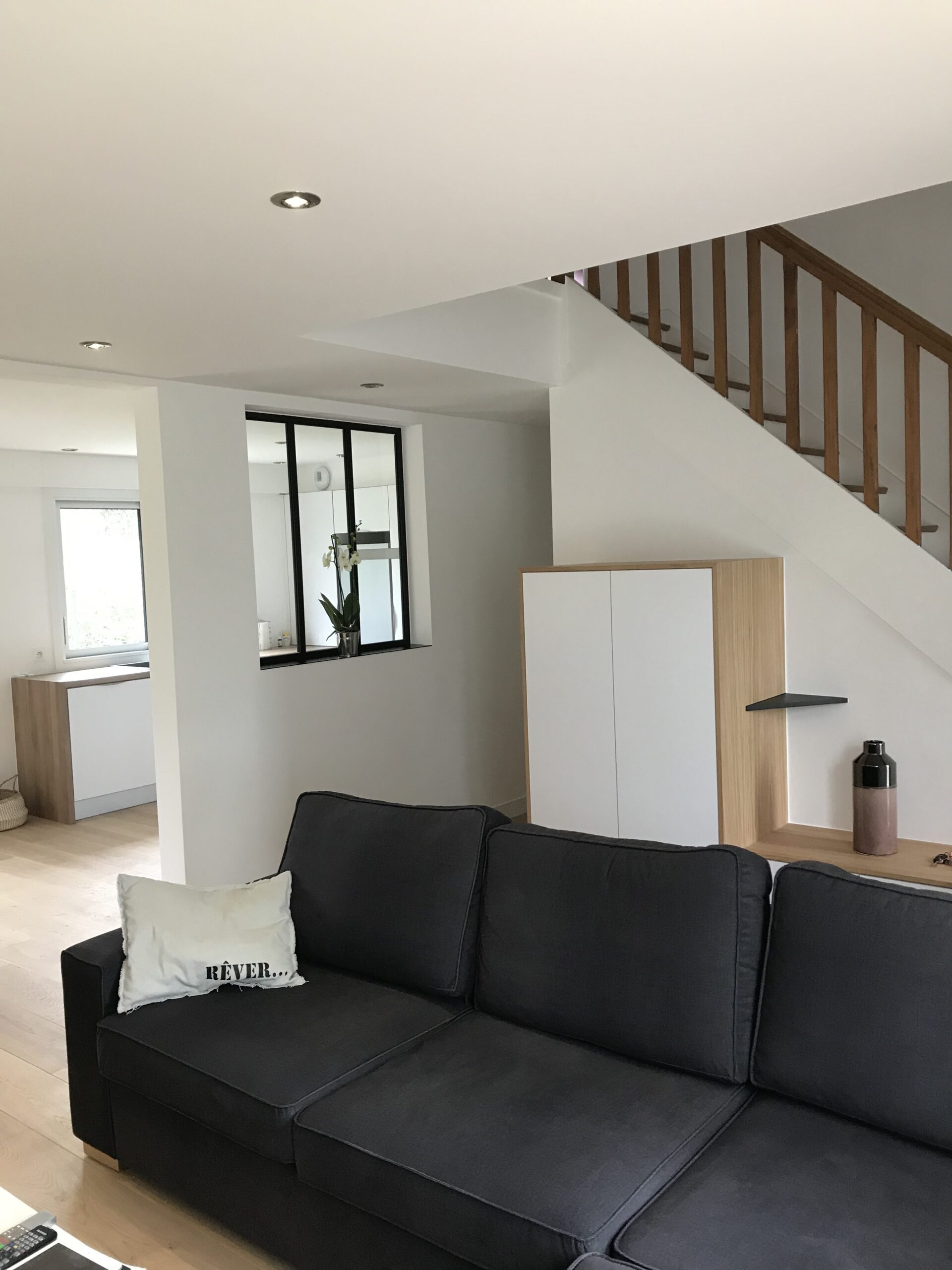 Nous nous sommes concentrés sur le RDC de la maison, et avons juste compléter l’isolation de la toiture et refait la façade.